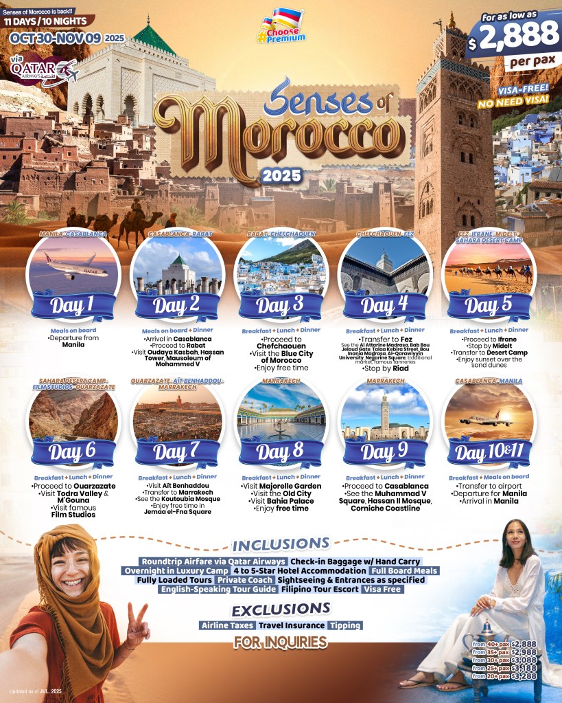 11d/10n Senses of Morocco Tour 2026 If you are interested to join this tour, please fill in your details below: ← BackThank you for your interest! A member of our team will get in touch with you. Name:(required) Email Address:(required) Mobile Number:(required) SendSubmitting form Δ
