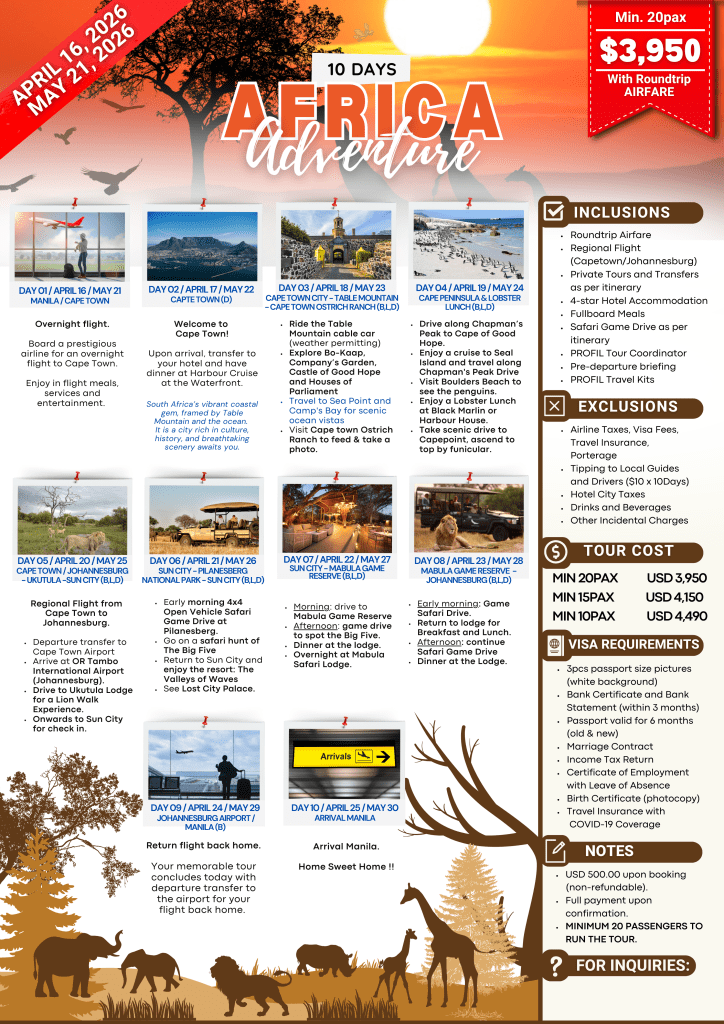 AFRICA ADVENTURE | APR-MAY 2026 If you are interested to join this tour, please fill in your details below: ← BackThank you for your interest! A member of our team will get in touch with you. Name(required) Email Address(required) Mobile Number(required) SendSubmitting form Δ