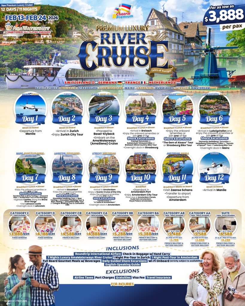 12d/11n PREMIUM LUXURY RIVER CRUISE 2026 If you are interested to join this tour, please fill in your details below: Go backThank you for your interest! A member of our team will get in touch with you. Name:(required) Warning Email Address:(required) Warning Mobile Number:(required) Warning Warning. SendSubmitting form Δ