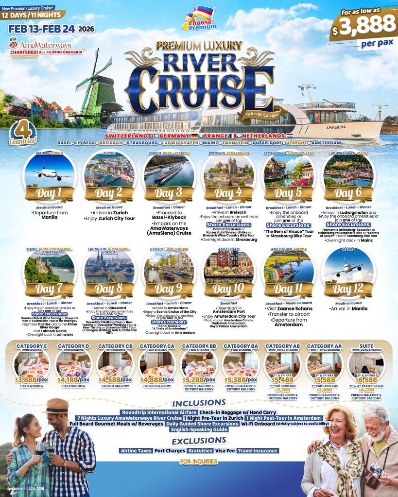 12d/11n PREMIUM LUXURY RIVER CRUISE 2026 If you are interested to join this tour, please fill in your details below: ← BackThank you for your interest! A member of our team will get in touch with you. Name:(required) Email Address:(required) Mobile Number:(required) SendSubmitting form Δ