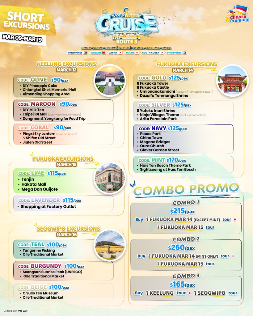 2026 COSTA SERENA CRUISE (SHORT EXCURSIONS) ROUTE 3 If you are interested to join this tour, please fill in your details below: ← BackThank you for your interest! A member of our team will get in touch with you. Name(required) Email Address(required) Mobile Number(required) SendSubmitting form Δ