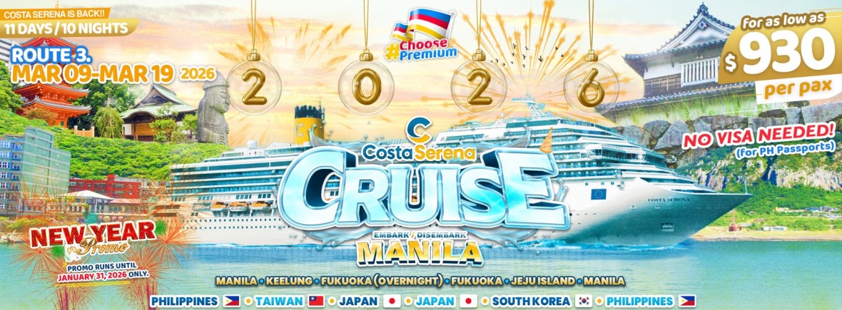 7d/6n COSTA SERENA CRUISE MANILA NEW YEAR PROMO 2026 (Route 3) If you are interested to join this tour, please fill in your details below: ← BackThank you for your interest! A member of our team will get in touch with you. Name(required) Email Address(required) Mobile Number(required) SendSubmitting form Δ