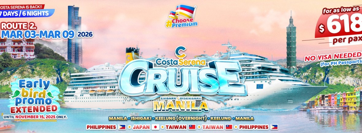 7d/6n COSTA SERENA IS BACK 2026!!! (Route 2) If you are interested to join this tour, please fill in your details below: Go backThank you for your interest! A member of our team will get in touch with you. Name(required) Warning Email Address(required) Warning Mobile Number(required) Warning Warning. SendSubmitting form Δ