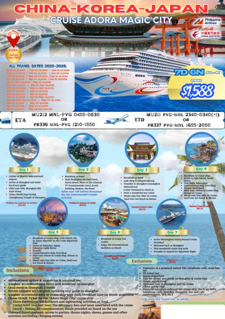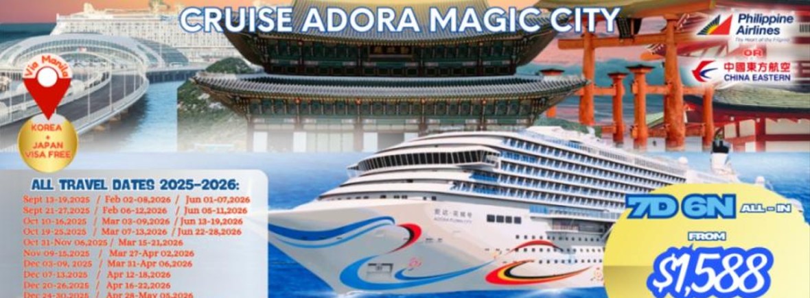 7d/6n CRUISE ADORA MAGIC CITY (CHINA-KOREA-JAPAN) 2025-2026 If you are interested to join this tour, please fill in your details below: Go backThank you for your interest! A member of our team will get in touch with you. Name(required) Warning Email Address(required) Warning Mobile Number(required) Warning Warning. SendSubmitting form Δ