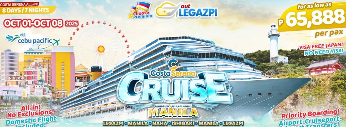 8d/7n COSTA SERENA ALL -IN 2025! LEGAZPI-MANILA-JAPAN-LEGAZPI If you are interested to join this tour, please fill in your details below: Go backThank you for your interest! A member of our team will get in touch with you. Name:(required) Warning Email Address:(required) Warning Mobile Number:(required) Warning Warning. SendSubmitting form Δ