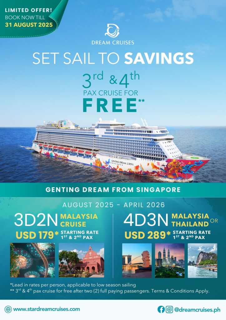 DREAM CRUISES SET SAIL TO SAVINGS 3rd & 4th! 2025-2026 3d/2n MALAYSIA CRUISE 4d/3n MALAYSIA or THAILAND If you are interested to join this tour, please fill in your details below: Go backThank you for your interest! A member of our team will get in touch with you. Name(required) Warning Email Address(required) Warning Mobile Number(required) Warning Warning. SendSubmitting form Δ