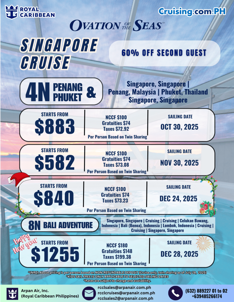 SINGAPORE CRUISE (4N PENANG & PHUKET – 8N BALI ADVENTURES) If you are interested to join this tour, please fill in your details below: Go backThank you for your interest! A member of our team will get in touch with you. Name:(required) Warning Email Address:(required) Warning Mobile Number:(required) Warning Warning. SendSubmitting form Δ