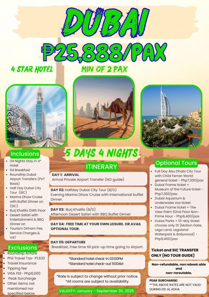 5d/4n DUBAI TOUR 2025 If you are interested to join this tour, please fill in your details below: Go backThank you for your interest! A member of our team will get in touch with you. Name(required) Warning Email Address(required) Warning Mobile Number(required) Warning Warning. SendSubmitting form Δ