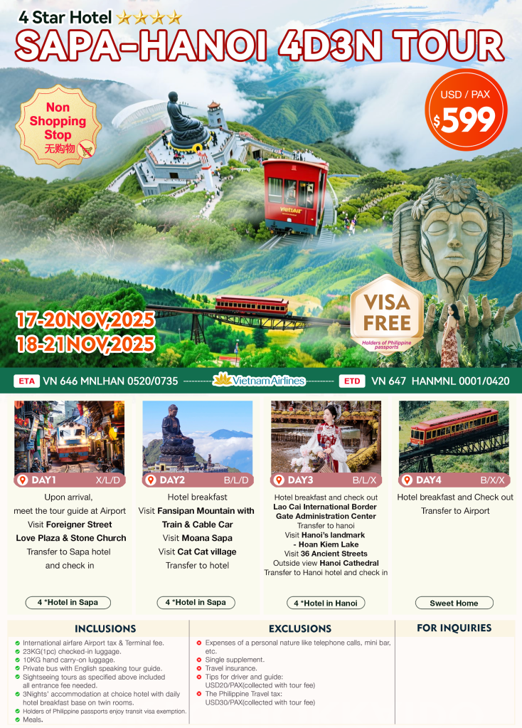 4d/3n SAPA – HANOI TOUR 2025 If you are interested to join this tour, please fill in your details below: ← BackThank you for your interest! A member of our team will get in touch with you. Name:(required) Email Address:(required) Mobile Number:(required) SendSubmitting form Δ