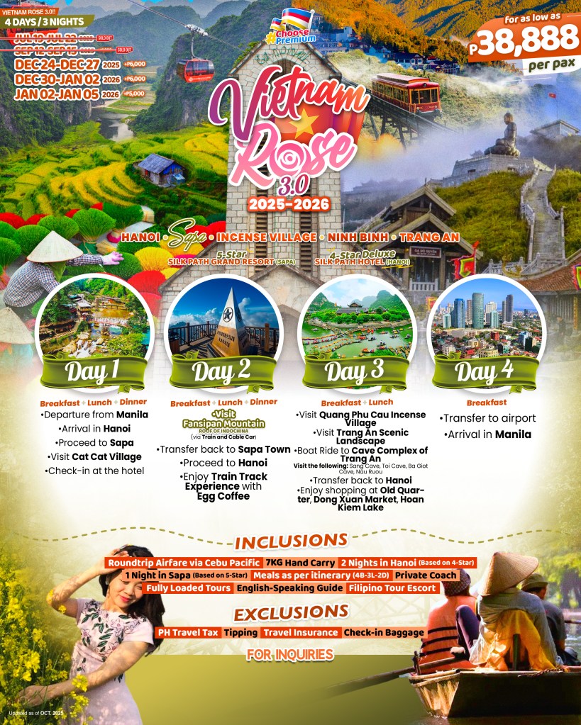 4d/3n VIETNAM ROSE 3.0 2025-2026 If you are interested to join this tour, please fill in your details below: Go backThank you for your interest! A member of our team will get in touch with you. Name:(required) Warning Email Address:(required) Warning Mobile Number:(required) Warning Warning. SendSubmitting form Δ