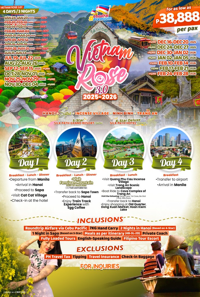 4d/3n VIETNAM ROSE 3.0 2025-2026 If you are interested to join this tour, please fill in your details below: ← BackThank you for your interest! A member of our team will get in touch with you. Name:(required) Email Address:(required) Mobile Number:(required) SendSubmitting form Δ