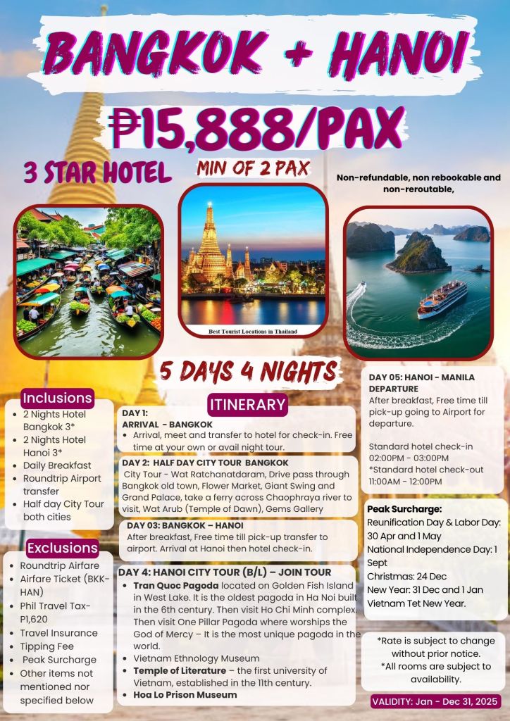 5d/4n BANGKOK + HANOI TOUR 2025 If you are interested to join this tour, please fill in your details below: Go backThank you for your interest! A member of our team will get in touch with you. Name:(required) Warning Email Address:(required) Warning Mobile Number:(required) Warning Warning. SendSubmitting form Δ