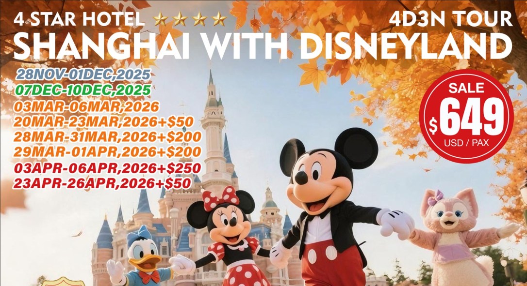 4d/3n SHANGHAI with DISNEYLAND TOUR 2025 – 2026