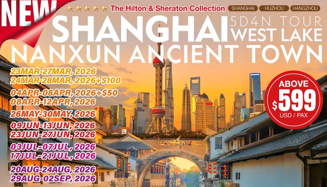 5d/4n NEW SHANGHAI WEST LAKE NANXUN ANCIENT TOWN TOUR 2026