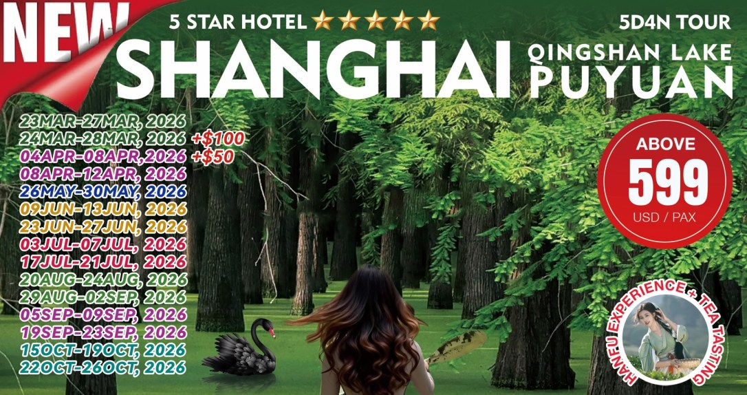 5d/4n NEW SHANGHAI QINGSHAN LAKE PUYUAN TOUR 2026