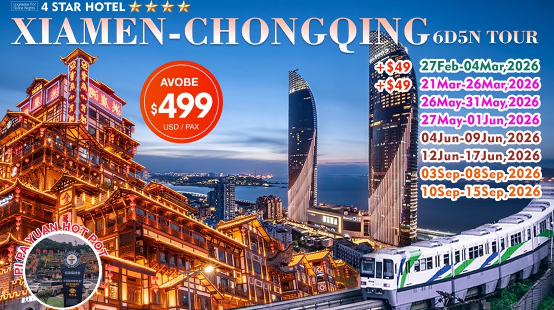 6d/5n XIAMEN-CHONGQING TOUR 2026