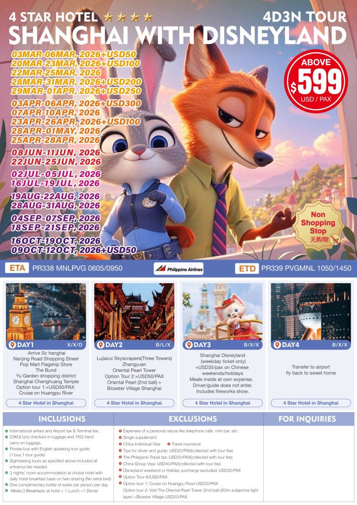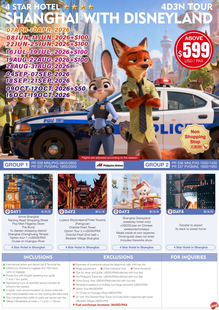 4d/3n SHANGHAI WITH DISNEYLAND TOUR 2026 If you are interested to join this tour, please fill in your details below: ← BackThank you for your interest! A member of our team will get in touch with you. Name:(required) Email Address:(required) Mobile Number:(required) SendSubmitting form Δ