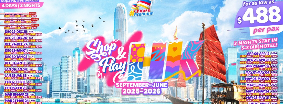 4d/3n Shop & Play @ HONG KONG TOUR 2025-2026 If you are interested to join this tour, please fill in your details below: Go backThank you for your interest! A member of our team will get in touch with you. Name(required) Warning Email Address(required) Warning Mobile Number(required) Warning Warning. SendSubmitting form Δ