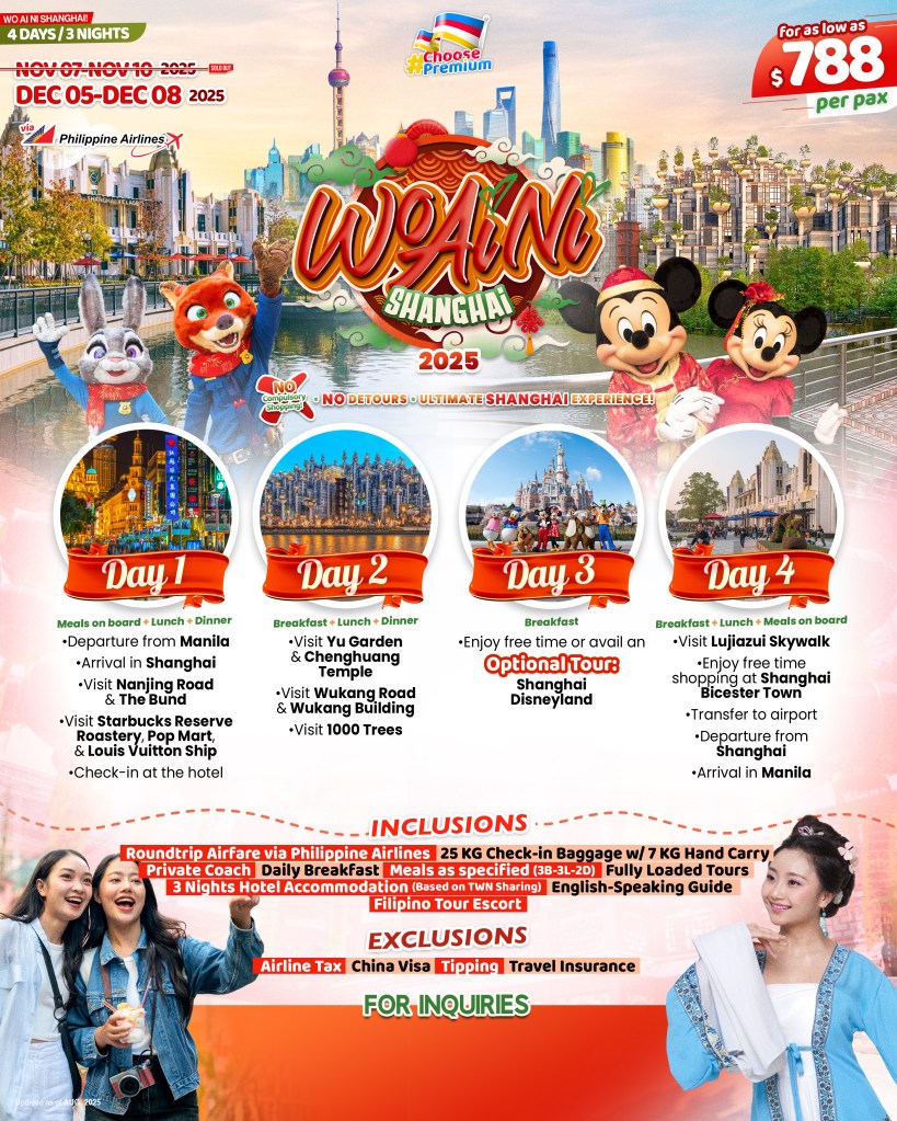 4d/3n WO AI NI SHANGHAI TOUR 2025 If you are interested to join this tour, please fill in your details below: ← BackThank you for your interest! A member of our team will get in touch with you. Name(required) Email Address(required) Mobile Number(required) SendSubmitting form Δ