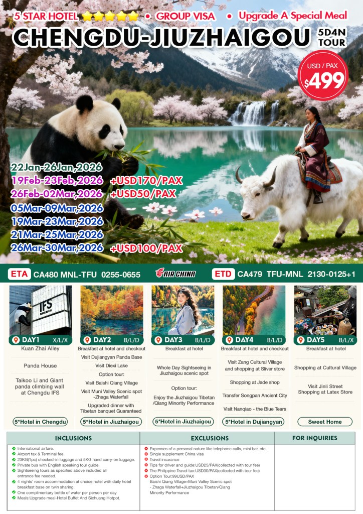 5d/4n CHENGDU-JIUZHAIGOU TOUR 2026 If you are interested to join this tour, please fill in your details below: Go backThank you for your interest! A member of our team will get in touch with you. Name:(required) Warning Email Address:(required) Warning Mobile Number:(required) Warning Warning. SendSubmitting form Δ