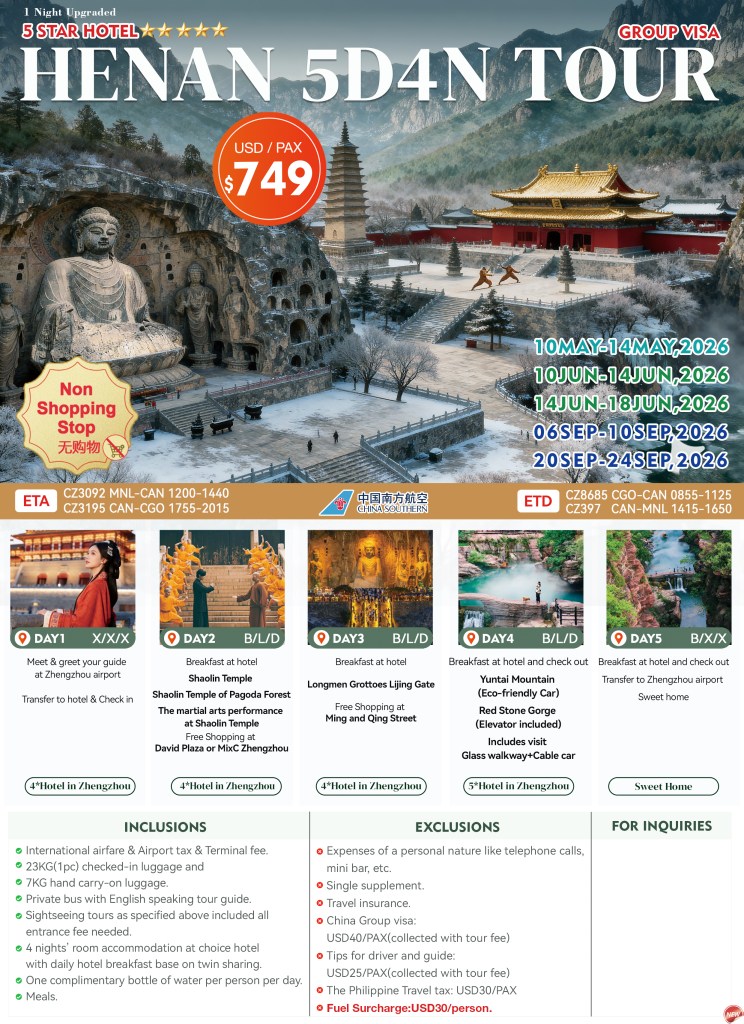 5d/4n HENAN TOUR 2026 If you are interested to join this tour, please fill in your details below: ← BackThank you for your interest! A member of our team will get in touch with you. Name(required) Email Address(required) Mobile Number(required) SendSubmitting form Δ