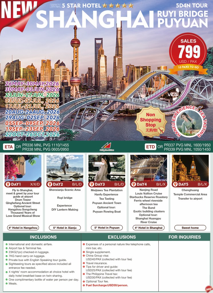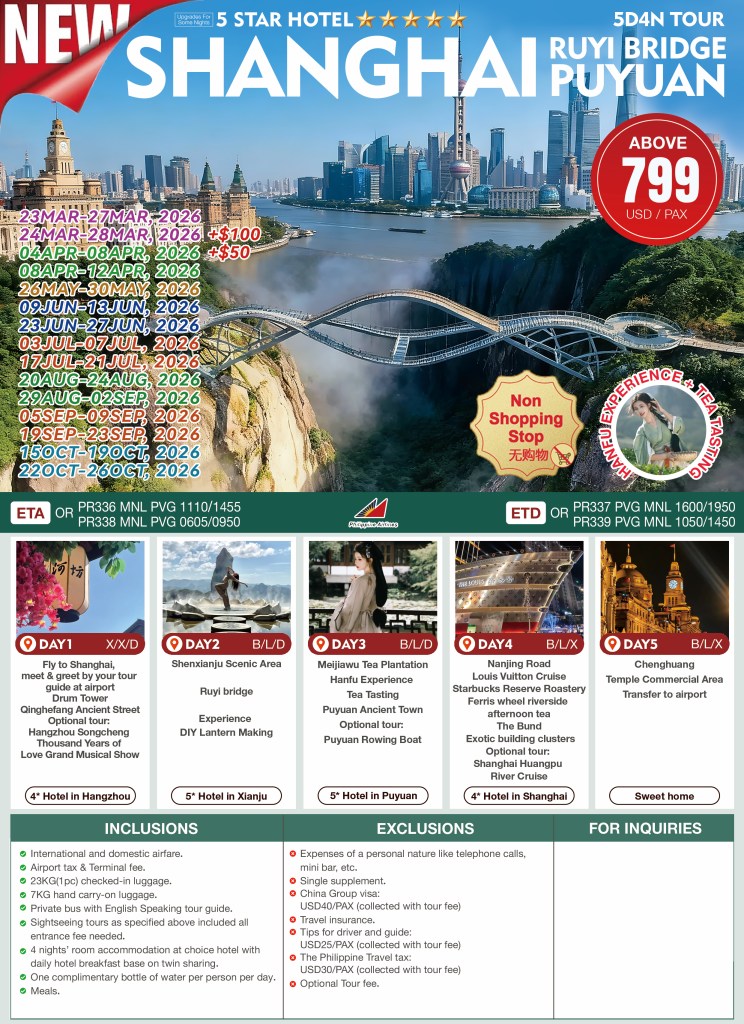 5d/4n SHANGHAI RUYI BRIDGE PUYUAN TOUR 2026 If you are interested to join this tour, please fill in your details below: ← BackThank you for your interest! A member of our team will get in touch with you. Name:(required) Email Address:(required) Mobile Number:(required) SendSubmitting form Δ