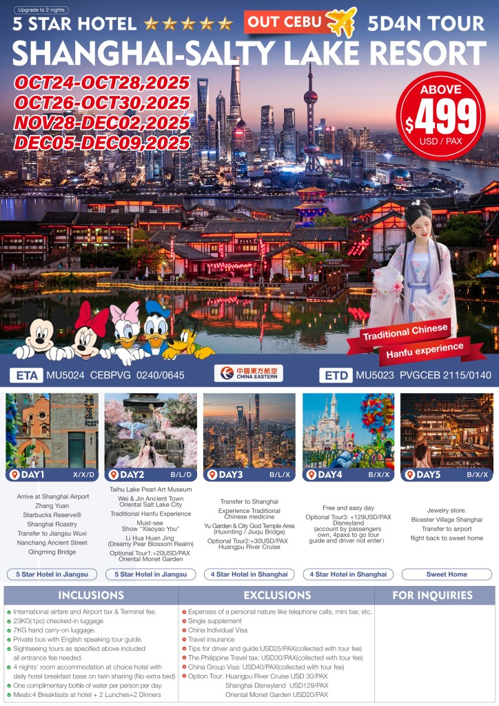 5d/4n SHANGHAI-SALTY LAKE RESORT OCT|DEC-2025 If you are interested to join this tour, please fill in your details below: ← BackThank you for your interest! A member of our team will get in touch with you. Name(required) Email Address(required) Mobile Number(required) SendSubmitting form Δ