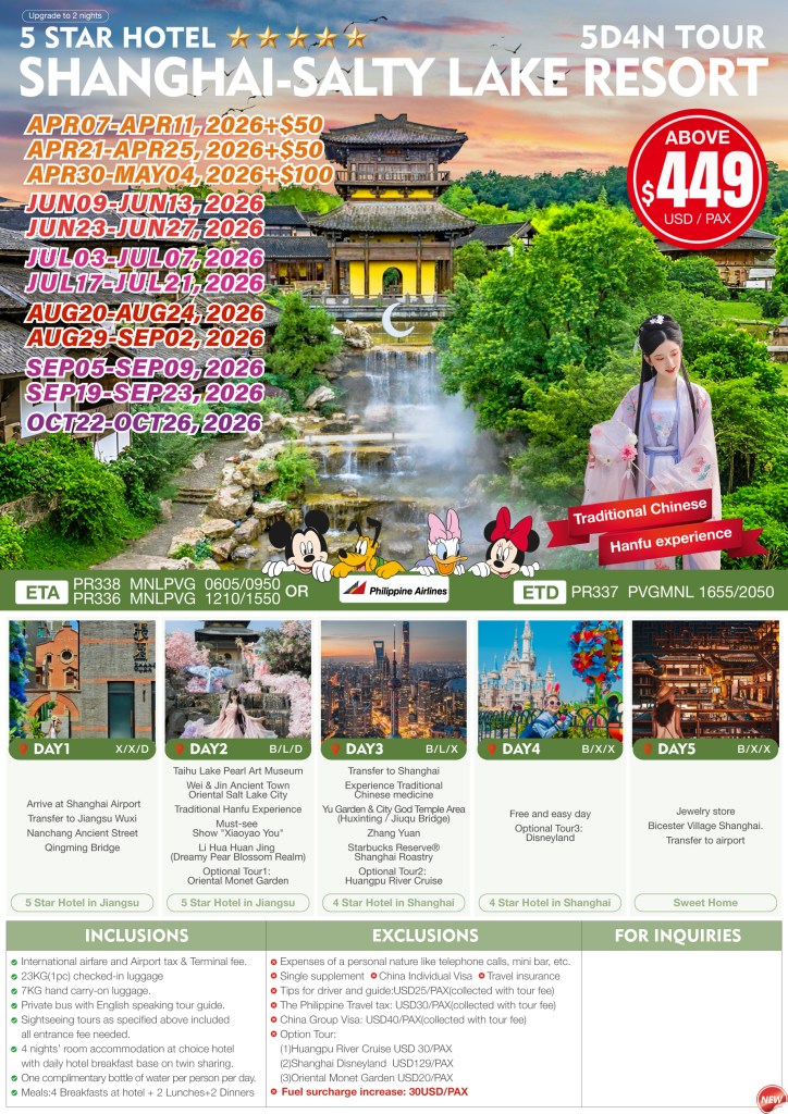 5d/4n SHANGHAI-SALTY LAKE RESORT 2026 If you are interested to join this tour, please fill in your details below: ← BackThank you for your interest! A member of our team will get in touch with you. Name(required) Email Address(required) Mobile Number(required) SendSubmitting form Δ