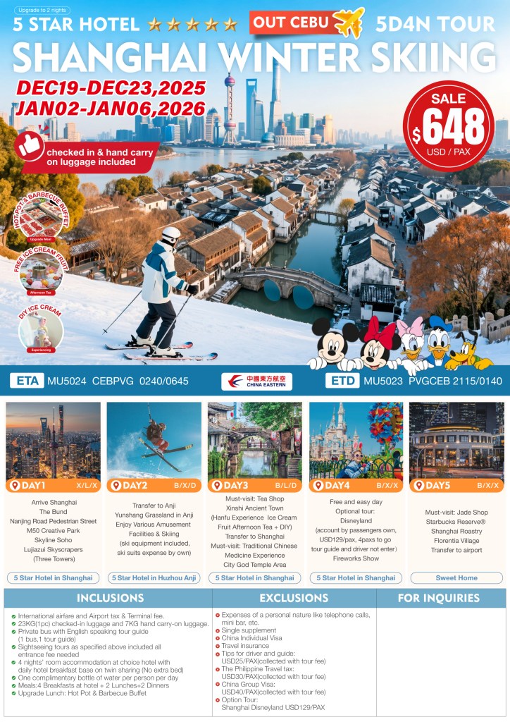 5d/4n SHANGHAI WINTER SKIING 2025-2026 If you are interested to join this tour, please fill in your details below: ← BackThank you for your interest! A member of our team will get in touch with you. Name(required) Email Address(required) Mobile Number(required) SendSubmitting form Δ