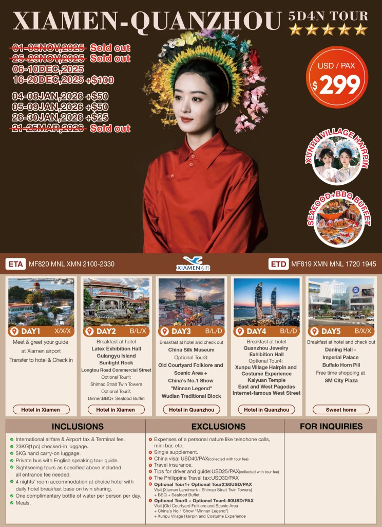 5d/4n XIAMEN-QUANZHOU TOUR 2025-2026 If you are interested to join this tour, please fill in your details below: Go backThank you for your interest! A member of our team will get in touch with you. Name:(required) Warning Email Address:(required) Warning Mobile Number:(required) Warning Warning. SendSubmitting form Δ