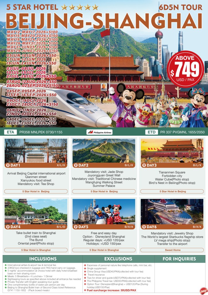 6d/5n BEIJING – SHANGHAI TOUR 2026 If you are interested to join this tour, please fill in your details below: ← BackThank you for your interest! A member of our team will get in touch with you. Name(required) Email Address(required) Mobile Number(required) SendSubmitting form Δ