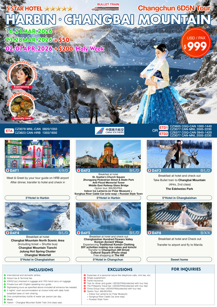 6d/5n HARBIN CHANGBAI MOUNTAIN TOUR 2026 If you are interested in join this tour, please fill in your details below: Go backThank you for your interest! A member of our team will get in touch with you. Name:(required) Warning Email Address:(required) Warning Mobile Number:(required) Warning Warning. SendSubmitting form Δ