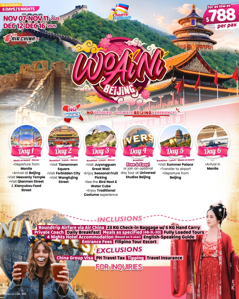 6d/5n WO AI NI BEIJING TOUR 2025 If you are interested to join this tour, please fill in your details below: ← BackThank you for your interest! A member of our team will get in touch with you. Name(required) Email Address(required) Mobile Number(required) SendSubmitting form Δ
