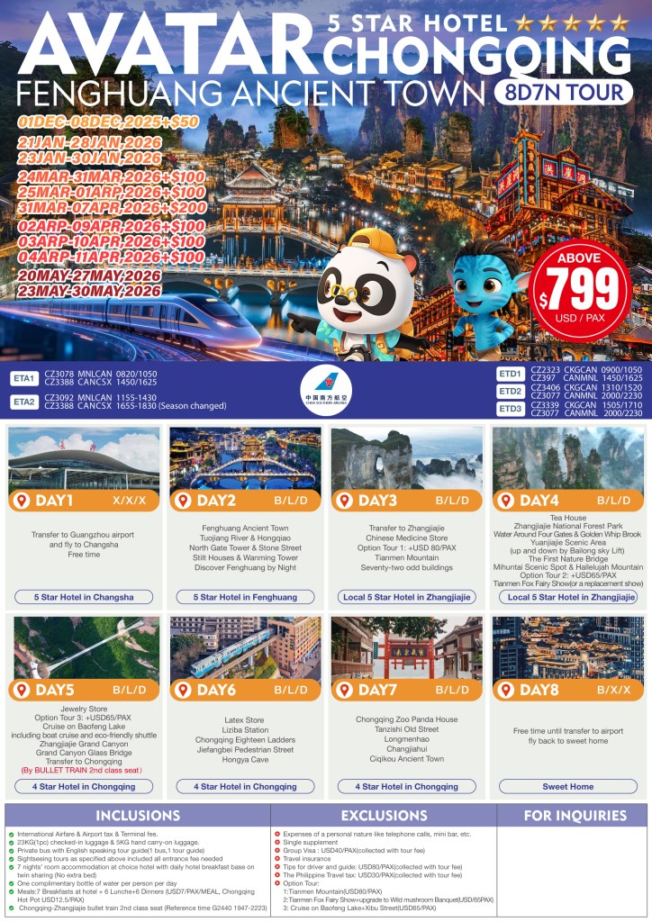8d/7n AVATAR CHONGQING 2025-2026 (Fenghuang Ancient Town) If you are interested to join this tour, please fill in your details below: Go backThank you for your interest! A member of our team will get in touch with you. Name(required) Warning Email Address(required) Warning Mobile Number(required) Warning Warning. SendSubmitting form Δ