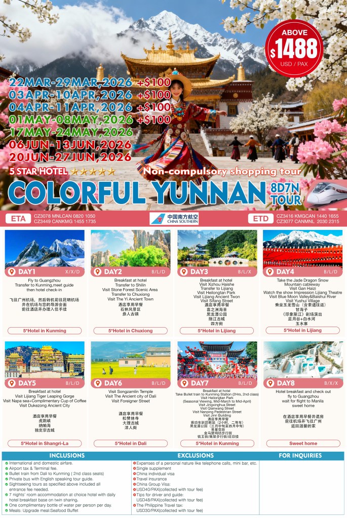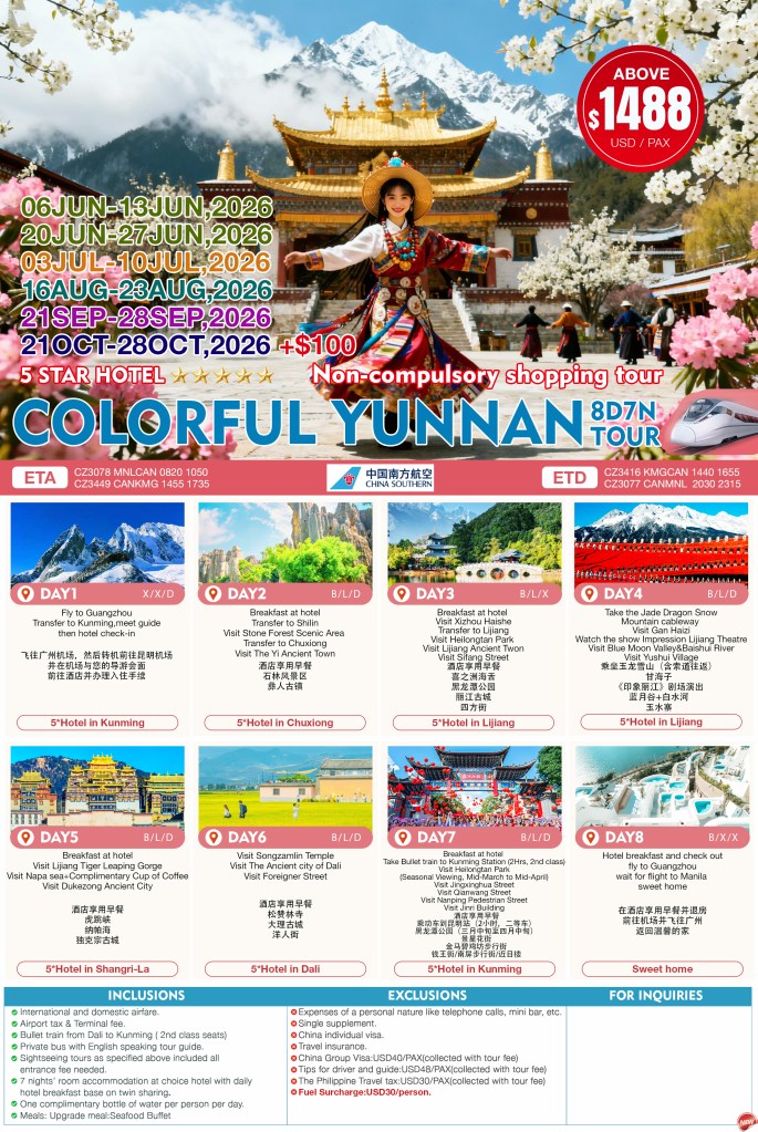 8d/7n COLORFUL YUNNAN TOUR 2026 If you are interested in join this tour, please fill in your details below: ← BackThank you for your interest! A member of our team will get in touch with you. Name:(required) Email Address:(required) Mobile Number:(required) SendSubmitting form Δ