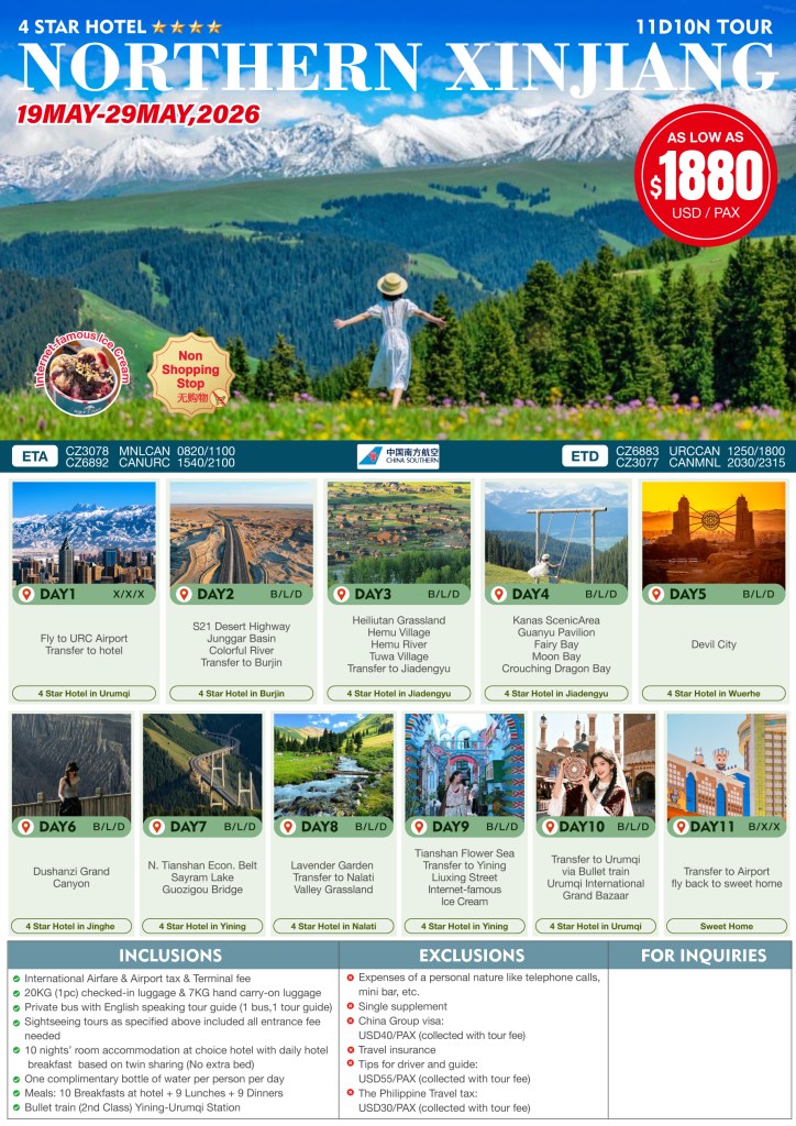 8d/7n NORTHERN XINJIANG TOUR MAY 2026 If you are interested to join this tour, please fill in your details below: ← BackThank you for your interest! A member of our team will get in touch with you. Name:(required) Email Address:(required) Mobile Number:(required) SendSubmitting form Δ