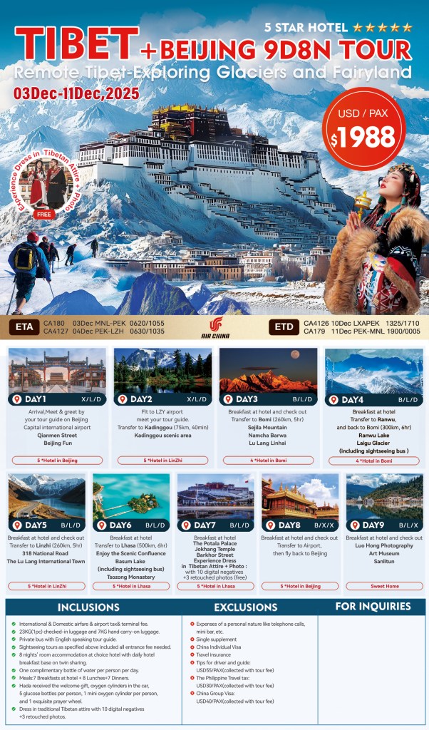 9d/8n TIBET+BEIJING TOUR 2025 (Exploring Glaciers and Fairyland) If you are interested to join this tour, please fill in your details below: ← BackThank you for your interest! A member of our team will get in touch with you. Name(required) Email Address(required) Mobile Number(required) SendSubmitting form Δ