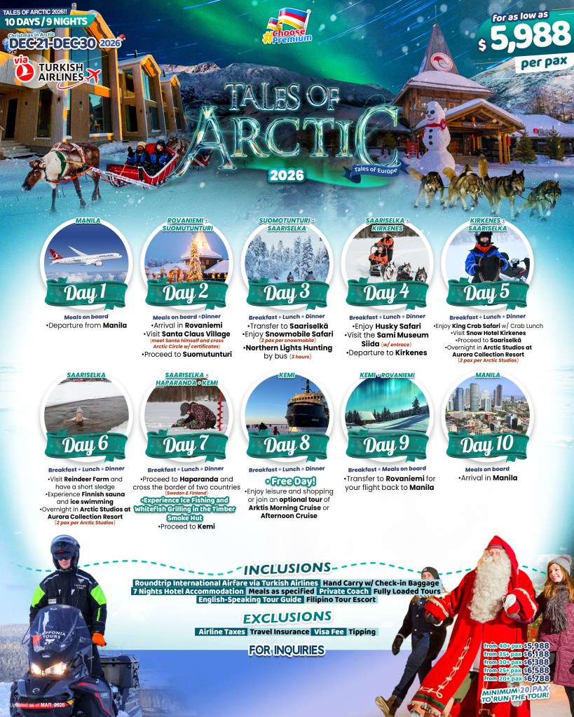 10d/9n Europe (Tales of Arctic) 2026 If you are interested to join this tour, please fill in your details below: ← BackThank you for your interest! A member of our team will get in touch with you. Name(required) Email Address(required) Mobile Number(required) SendSubmitting form Δ