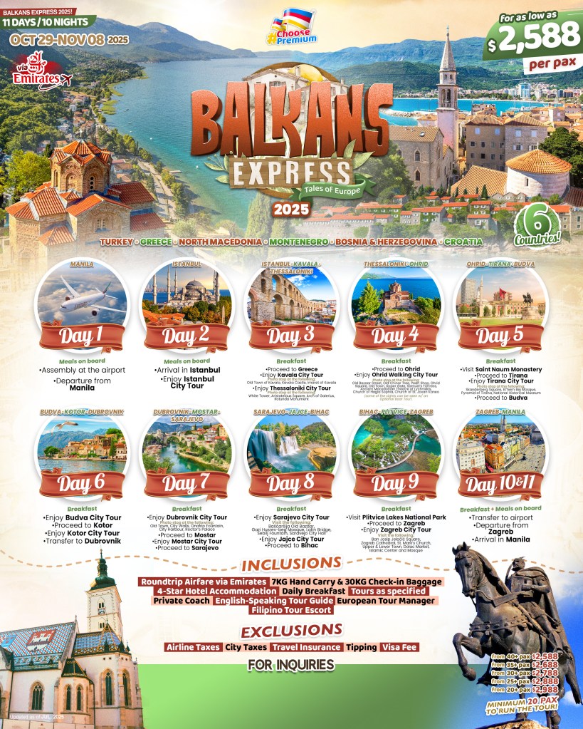 11d/10n Balkans Express 2025 – Tales of Europe If you are interested to join this tour, please fill in your details below: ← BackThank you for your interest! A member of our team will get in touch with you. Name(required) Email Address(required) Mobile Number(required) SendSubmitting form Δ