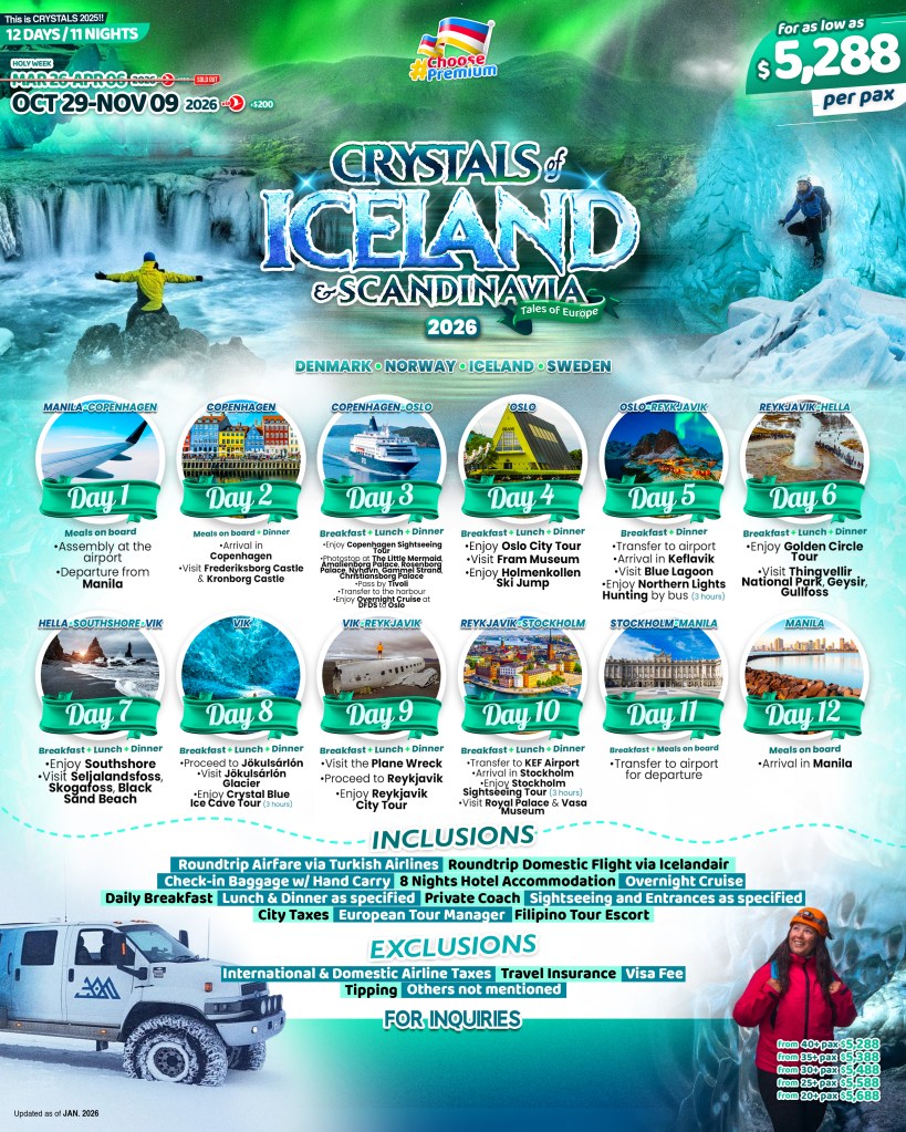 12d/11n Crystals of Iceland & Scandinavia – Tales of Europe 2026 If you are interested to join this tour, please fill in your details below: ← BackThank you for your interest! A member of our team will get in touch with you. Name:(required) Email Address:(required) Mobile Number:(required) SendSubmitting form Δ