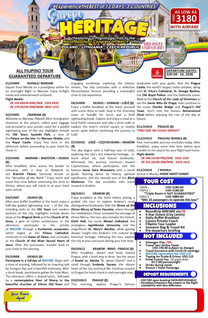 13d/12n Europe Heritage 2026 If you are interested to join this tour, please fill in your details below: ← BackThank you for your interest! A member of our team will get in touch with you. Name(required) Email Address(required) Mobile Number(required) SendSubmitting form Δ
