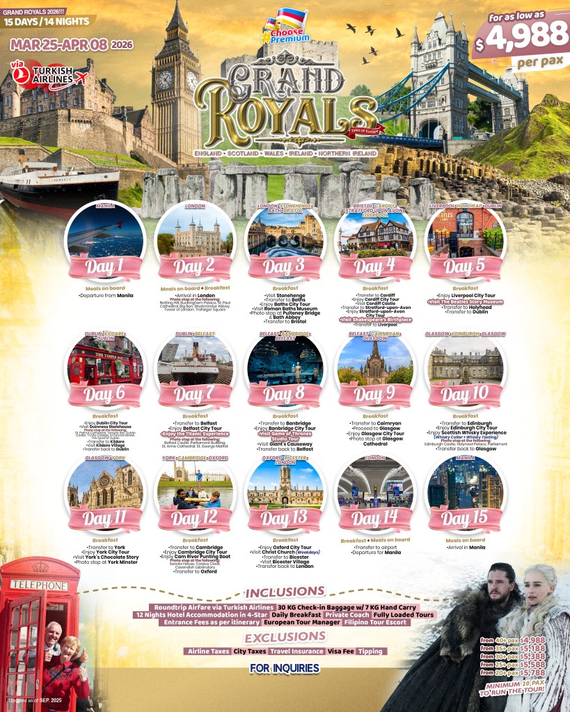 15d/14n GRAND ROYALS TOUR 2026!! If you are interested to join this tour, please fill in your detail below: ← BackThank you for your interest! A member of our team will get in touch with you. Name(required) Email Address(required) Mobile Number(required) SendSubmitting form Δ