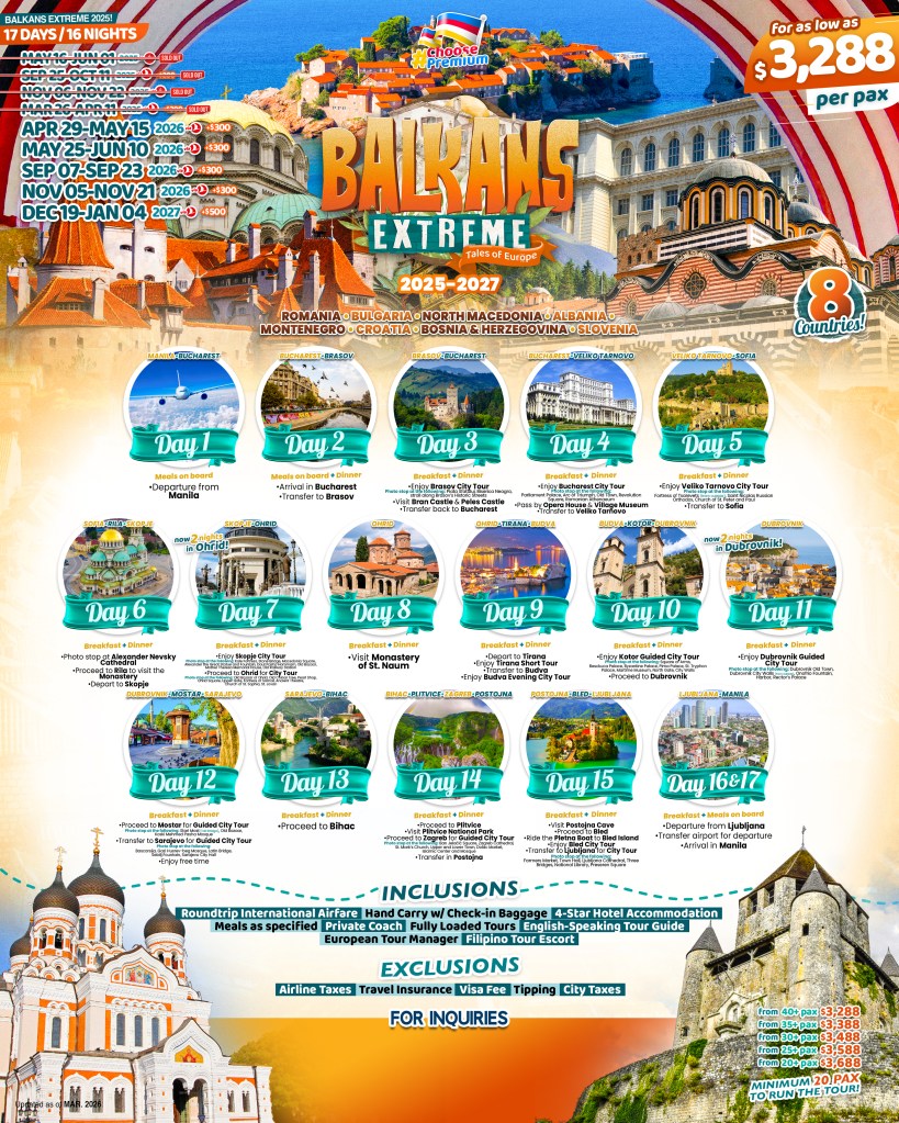 17d/16n Balkans Extreme TOUR 2026-2027 If you are interested to join this tour, please fill in your details below: ← BackThank you for your interest! A member of our team will get in touch with you. Name(required) Email Address(required) Mobile Number(required) SendSubmitting form Δ
