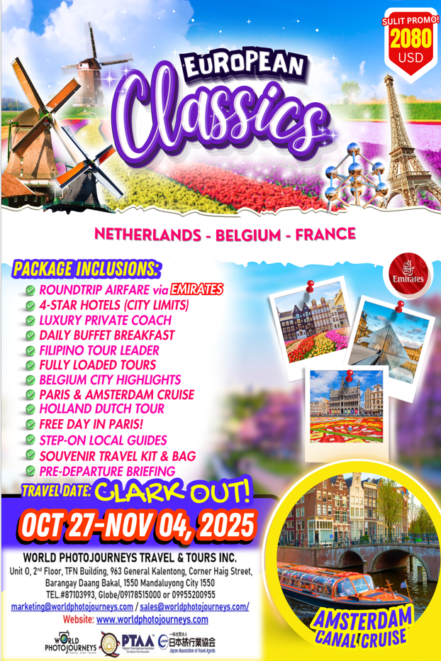 9d/8n EUROPEAN CLASSICS 2025 (OCT-NOV) If you are interested to join this tour, please fill in your details below: Go backThank you for your interest! A member of our team will get in touch with you. Name(required) Warning Email Address(required) Warning Mobile Number(required) Warning Warning. SendSubmitting form Δ