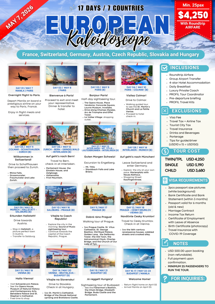 EUROPEAN KALEIDOSCOPE | MAY 2026 If you are interested to join this tour, please fill in your details below: ← BackThank you for your interest! A member of our team will get in touch with you. Name(required) Email Address(required) Mobile Number(required) SendSubmitting form Δ
