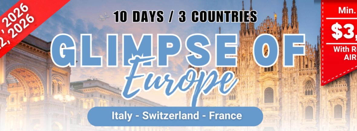GLIMPSE OF EUROPE | APR 17 & MAY 22, 2026 If you are interested to join this tour, please fill in your details below: ← BackThank you for your interest! A member of our team will get in touch with you. Name(required) Email Address(required) Mobile Number(required) SendSubmitting form Δ