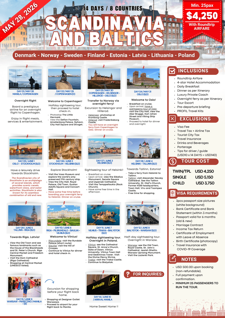 SCANDINAVIA AND BALTICS | MAY 2026 If you are interested to join this tour, please fill in your details below: ← BackThank you for your interest! A member of our team will get in touch with you. Name(required) Email Address(required) Mobile Number(required) SendSubmitting form Δ