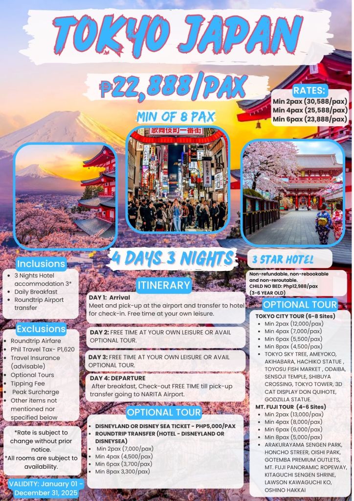 4d/3n TOKYO JAPAN TOUR 2025 If you are interested to join this tour, please fill in your details below: ← BackThank you for your response. ✨ Name(required) Email(required) Phone SendSubmitting form Δ