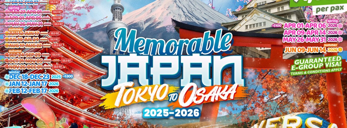 6d/5n MEMORABLE JAPAN TOKYO – OSAKA via 5J!! 2025-2026 If you are interested in join this tour, please fill in your details below: Go backThank you for your interest! A member of our team will get in touch with you. Name:(required) Warning Email Address:(required) Warning Mobile Number:(required) Warning Warning. SendSubmitting form Δ