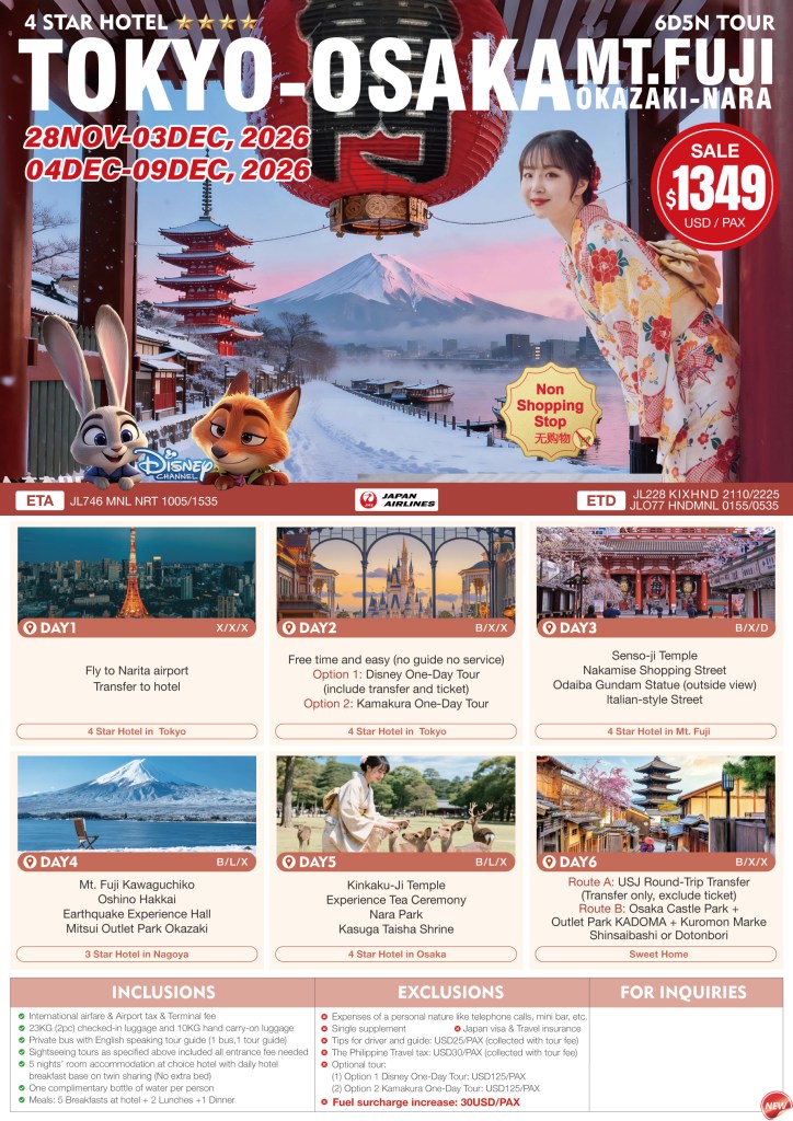 6d/5n Tokyo-Osaka-Mt.Fuji-Okazaki-Nara Tour 2026 If you are interested to join this tour, please fill in your details below ← BackThank you for your interest! A member of our team will get in touch with you. Name(required) Email Address(required) Mobile Number(required) SendSubmitting form Δ